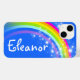 Söt blå himmel regnbåge och stjärnor formger iphone case. Personalisera med din egen namn, det här exemplet lyder Eleanor. Exklusivt designat och illustrerat av Sarah Trett för www.mylittleeden.com