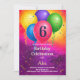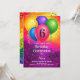 Bright, colorful balloon birthday invitation featuring vibrant confetti, playful gradients, for cheerful “Birthday Party” invitations—perfect for your kiddo's birthday celebrations. Backer has colorful stripes with confetti.