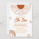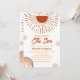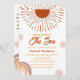 Jag ska fira din babydusch med vår söta och vackra solskensregnbåge "här kommer barnduschtemat". Utformningsfunktion med boho sol, regnbåge i neutralt terracotta scheme färg. Perfekt för pojke babydusch party. Du kan skräddarsy din egen unika text och färg med din söta lilla baby namn.