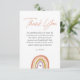Rainbow Boho Peach Baby Shower-inbjudan har en god regnbåge i skuggor av rosa, , persika, senap och lila, tillsammans med modern kalligrafi.