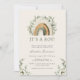 Det är en pojke! Rainbow Boy Shower-inbjudan. Vi presenterar vår förtjusande Boho Rainbow Baby Shower Collection, där vita, handmålade vattenfärgade regnbågar i fina toner av sage grönt, terracotta och stans bredvid trendig eucalyptus botanicals på en serene beige backdroppe, med ett kompletterande mönster på baksidan i djup skal. Denna samling omfattar allt du behöver för ett minnesvärt firande, från utsökta inbjudningar och visitkort till ett charmerande välkomsttecken, vackra märkre, favoritpåsar och till och med samordning av pappra tallrikar, kopp och blöjor. Låt den här samlingen sätta igång för en glädjande och snyggt sammankomst för att fira den lilla annans förestående ankomst.