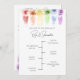 Regnbåge bröllopsprogram, med 5-punkters tidslinje och bröllopsfesten på baksidan. Gay lesbisk bröllopsprogram med regnbåge ro. Platt dubbla sidoprogram.