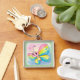 Rainbow Butterfly Keychain Fyrkantig Silverfärgad Nyckelring