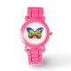 Realistisk monarch-fjäril i regnbågens hela färg mot en vit bakgrund. Regnbågfjäril.