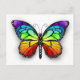 Realistisk monarch-fjäril i regnbågens hela färg mot en vit bakgrund. Regnbågfjäril.