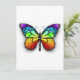 Realistisk monarch-fjäril i regnbågens hela färg mot en vit bakgrund. Regnbågfjäril.
