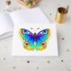 Regnbåge, realistiska, konstnärligt ritade, ljusa färger bondfjäril med texturerat detaljerat vingar mot vit bakgrund. Regnbågfjäril.