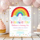 Den här söta födelsedagsinbjudan innehåller en färgstark regnbåge och moln med regnbåge konetti och faux guld glitter accents.
