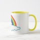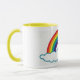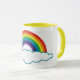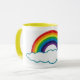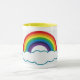 Kaffe Kopp Med en söt regnbåge på den med gult i insidan av kopp.