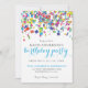 Det här ljusa, moderna födelsedagsfest inbjudan har en färgstark uppsättning konfetti. Perfekt för alla ålders- eller party-teman.