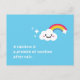 Detta vykort visar en regnbåge i ett grumligt himmel som skapar en fredlig och hoppfull känsla. Dess mjuka färg gör det lugnande och söt. Det är perfekt till eller behålla som en munter påminnelse.