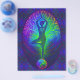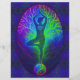 Artverk med en dam som gör en yoga-ställning ovanpå en yin-yang.