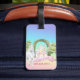 Den här magiska och fantastiska anpassningsbarna bagagetaggen har en vattenfärg på stil-sagans prinsessa-tema över en regnbågsövertoning. En bild av ett slott visas i avstånd, utanför trädgårdarna. En stor vit häst rinner framför bilden, bland söt pastellblommor. Ett exempel på namn skrivs ut över en rosa banderoll.