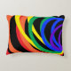 Pressa upp din hemdekoration med den här färgstarka accentkudden som har en abstrakt med tre dimensioner mönster av regnbågscerccent måne i färg med rött, orange, gult, grönt, blått och lila mot svart bakgrund.