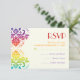 Regnbåge färg, damm, OSA-/svarskort för bröllop som innehåller en dammmotif i färg på elfenbensbakgrund. Denna moderna men klassiska utformning är en mall och ingår i en bröllop-uppsättning som är lämplig för ett vår, sommarbröllop med regnbåge. Det är anpassade och kan vara personlig. Färg: Röd, orange, gult, grönt, blått, violett lila, elfenben.
