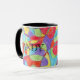 Det här kaffet mugg har en abstrakt doodle med starkt regnbåge färg. Mönster är en färgad med regnbåge som jag ritade för hand och sedan skannade in i datorn så att jag kunde få en realistisk hand färgad struktur, så att det ser ut som om krajonen ritades direkt på föremålet. Ett färgstarkt och roligt som komplement till din hemdekan! Det här objektet kan lätt vara personlig!