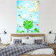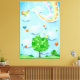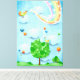 Surrealistisk illustration med regnbåge färg, musik noter, fåglar och stora träd.