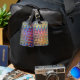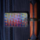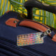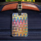 Regnbåge färgad bagagetapp i Swoboda mönster. Eftersom mönster trycks två gånger, är färgens genomskinlighet ge tryckdjupet och skapar nytt färg. Anpassa den med ditt namn och din kontaktinformation.