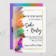 Rainbow Feather Bröllop spara datum Inbjudningar