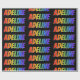Den här roligten, en flerfärgad, vibrerande papper utformning, har den vanligaste "ADELINE" från namn som har ett färgstarkt regnbågsspektrum som färgning av mönster. Bakgrunden är svart på färgad. Ett färgstarkt papper som detta kan vara ett roligt sätt att figurera en gåva som ges till någon som heter Adeline. [~Z0000354]