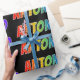 Den pappra designen med ett dynamiskt, flerfärgat, spännande hölje har den gemensamma första namn-"ANTONIO" som har en färgstark regnbågsspektrumövertoning som färgning av mönster. Bakgrunden är svart på färgad. Att slå papper så här kan vara roligt till använda när det är ge en gåva till någon som heter Antonio. [~Z0000354]
