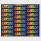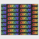 Den pappra utformningen av den multifärgade, vibrerande och spännande omslutningen har den gemensamma första namn-"CARLOS" med en färgstark regnbågsspektrumövertoning som färgningen av mönster. Bakgrunden är svart på färgad. En färgfull omslagning papper som denna kan vara roligt till använda när det är ge en present eller gåva till någon som heter Carlos. [~Z0000354]