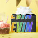 Den spännande, roligt, flerfärgade pappra designen har den gemensamma första namn-"DEVIN" som har ett färgstarkt regnbågsspektrum som färgning av mönster. Den har också en svart färgad. Att gräva papper som det här kan vara ett roligt sätt att slå in en gåva som ges till någon som heter Devin. [~Z0000354]