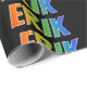 Den här roligten, en flerfärgad, spännande papper utformning, har den gemensamma första namn-"ERIK" som har ett färgstarkt regnbågsspektrum som inspirerar till färgning av mönster. Bakgrunden är svart på färgad. Att slå papper som det här kan vara ett roligt sätt att omkullkasta en present som ges till någon som heter Erik. [~Z0000354]