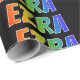 Den här roligten, en flerfärgad, spännande papper utformning, har den vanligast förekommande namn-"EZRA" med en färgstark regnbågsspektrumövertoning som inspirerar till färgning av mönster. Bakgrunden är svart på färgad. Att slå papper så här kan vara en roligt för att slå ihop en gåva eller gåva som ges till någon vid namn Ezra. [~Z0000354]