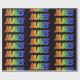 Den här pappra designen med flera färgade, spännande roligtar har den gemensamma första namn-"JAMES" med ett färgstarkt regnbågsspektrum som färgning av mönster. Bakgrunden är svart på färgad. En färgfull omslagning papper som den här kan vara roligt till använda när det är ge en present eller gåva till någon vid namn James. [~Z0000354]