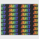 Den pappra designen med en sjudande, roligt och spännande omslutning har den gemensamma första namn-"JANET" som har ett färgstarkt regnbågsspektrum som inspirerar till färgning av mönster. Den har också en svart färgad. Ett färgstarkt omslag pappert som detta kan vara ett roligt sätt att omforma en gåva eller present som ges till någon vid namn Janet. [~Z0000354]
