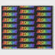 Den här pappra designen med flera färgade, spännande roligtar har den gemensamma första namn-"JASMINE", som har ett färgstarkt regnbågsspektrum som inspirerar till färgning av mönster. Bakgrunden är svart på färgad. Det kan vara roligt till använda när det är ge en gåva till någon som heter Jasmine. [~Z0000354]