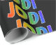 Den här roligten, flerfärgad, pulserande papper design, har den vanligaste namn-"JODI" som har ett färgstarkt regnbågsspektrum som inspirerar till färgning av mönster. Den har också en svart färgad. En färgfull omslagning papper som den här kan vara roligt till använda när det är ge en gåva till någon som heter Jodi. [~Z0000354]
