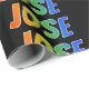Denna spännande, roligt, vibrerande pappra utformning har den gemensamma första namn-"JOSE" som har ett färgstarkt regnbågsspektrum som färgning av mönster. Bakgrunden är svart på färgad. Ett färgstarkt omslag pappert som detta kan vara ett roligt sätt att omforma en gåva eller present som ges till någon som heter Jose. [~Z0000354]