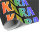 Den här multifärgade, roligt och spännande pappra designen har den gemensamma första namn-"KARA" med en färgstark regnbågsspektrumövertoning som färgning av mönster. Den har också en svart färgad. Att slå papper så här kan vara en roligt för att slå ihop en present som ges till någon vid namn Kara. [~Z0000354]
