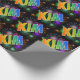 Den här roligten, en pulserande, flerfärgad design, har det vanligaste namn-"KIM" med ett färgstarkt regnbågsspektrum som färgning av mönster. Den har också en färgstark sprängning av fyrverkerier som inspirerat mönster. Att packa papper som detta kan vara ett roligt sätt att packa en gåva eller present som ges till någon som heter Kim. [~Z0000336]