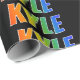 Den pappra designen med en sjudande, spännande roligt som är inbyggd i det första namn-"KYLE" med ett färgstarkt regnbågsspektrum som färgning av mönster. Bakgrunden är svart på färgad. Att slå papper så här kan vara ett roligt sätt att slå ihop en present eller gåva som ges till någon som heter Kyle. [~Z0000354]