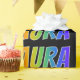 Den pappra utformningen av den pulserande, flerfärgade roligten har den gemensamma första namn-beteckningen "LAURA" med ett färgstarkt regnbågsspektrum som färgningen av mönster. Den har också en svart färgad. En så papper förpackning kan vara roligt till använda när det är ge en gåva eller present till någon som heter Laura. [~Z0000354]