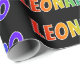 Den här multifärgade, roligt och spännande pappra designen har den gemensamma första namn-"LEONARDO" med färgstarkt regnbågsspektrum som inspirerar till färgning av mönster. Den har också en svart färgad. En färgfull omslagning papper som detta kan vara roligt till använda när det är ge en gåva eller present till någon som heter Leonardo. [~Z0000354]