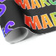 Den pappra utformningen av den multifärgade, pulserande roligten har den gemensamma första namn-"MARCUS" som har ett färgstarkt regnbågsspektrum som färgning av mönster. Bakgrunden är svart på färgad. Att slå papper som det här kan vara ett roligt sätt att figurera en gåva eller present som ges till någon som heter Marcus. [~Z0000354]
