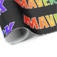 Den pappra designen med ett dynamiskt, roligt, flerfärgat hölje är den vanlige namn "MAVERICK" som har en färgstark regnbågsspektrumövertoning som inspirerar till färgning av mönster. Bakgrunden är svart på färgad. Att gräva papper som detta kan vara ett roligt sätt att kapa en gåva som ges till någon som heter Maverick. [~Z0000354]