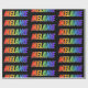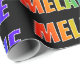 Den pappra utformningen av den multifärgade, pulserande roligten har den gemensamma första namn-modellen MELANIE med en färgstark regnbågsspektrumövertoning som inspirerar till färgning av mönster. Bakgrunden är svart på färgad. Att gräva papper som detta kan vara ett roligt sätt att kapa en present som ges till någon som heter Melanie. [~Z0000354]