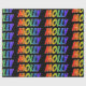 Den här multifärgade, vibrerande och roligtarna pappra designen har den vanligast namn "MOLLY" med en färgstark regnbågsspektrumövertoning som inspirerar till färgning av mönster. Bakgrunden är svart på färgad. En färgfull omslagning papper som detta kan vara roligt till använda när det är ge en present till någon som heter Molly. [~Z0000354]