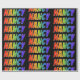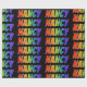 Denna spännande, livfulla och pappra utformning av roligten har den gemensamma första namn-"NANCY" med en färgstark regnbågsspektrumövertoning som inspirerar till färgning av mönster. Bakgrunden är svart på färgad. Att kasta papper som detta kan vara ett roligt sätt att omkullkasta en gåva som ges till någon som heter Nancy. [~Z0000354]