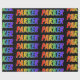 Den pappra designen med ett dynamiskt, roligt, flerfärgat hölje, som är namn "PARKER" och som har ett färgstarkt regnbågsspektrum som färgning av mönster. Den har också en svart färgad. En färglös omslagning papper som denna kan vara roligt till använda när det är ge en gåva eller present till någon som heter Parker. [~Z0000354]