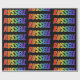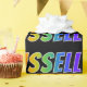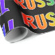 Den här roligten, en levande och spännande papper utformning med en färgstark regnbågsspektrumövertoning som färgning av mönster, har den vanligaste namnen "RUSSELL". Bakgrunden är svart på färgad. Ett färgstarkt pappert omslag kan vara ett roligt sätt att omkullkasta en present som ges till någon som heter Russell. [~Z0000354]