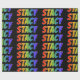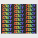 Den spännande, roligt, flerfärgade pappra designen har den gemensamma första namn-"STACY" som har ett färgstarkt regnbågsspektrum som inspirerar till färgning av mönster. Bakgrunden är svart på färgad. Att sätta papper på omslag kan vara en roligt för att omkullkasta en present som ges till någon som heter Stacy. [~Z0000354]