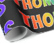 Den pappra designen med ett dynamiskt, flerfärgat, spännande hölje är den vanlige "THOMAS" från namn med ett färgstarkt regnbågsspektrum som inspirerar till färgning av mönster. Bakgrunden är svart på färgad. Att slå papper som det här kan vara ett roligt sätt att omforma en gåva som ges till någon som heter Thomas. [~Z0000354]