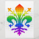 En regnbåge fleur-de-lis med en loppur-de-lis-bakgrund mönster.