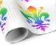 En regnbåge fleur-de-lis med en loppur-de-lis-bakgrund mönster.